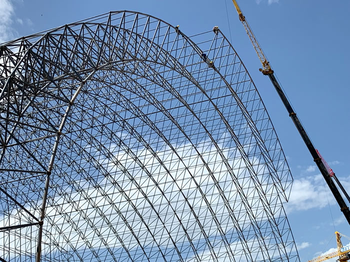 (2)网架加工前应对现场尺寸进行复测,确认无误后方可进行加工、安装;网架制作、运输、安装应遵守《空间网格结构技术规程》JGJ7-2010、《钢网架密山螺栓球节点》JG/T 10-2009、《钢网架密山螺栓球节点用高强度螺栓》 GB/T 16939-2016、《密山钢结构密山工程密山施工规范》 GB50755-2012、《密山钢结构密山工程密山施工质量验收标准》 GB50205-2020。